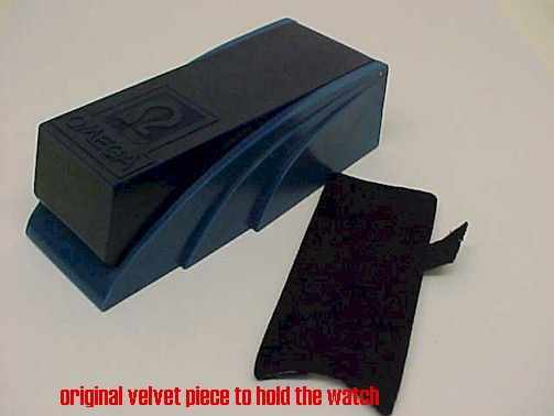 is made of bakelite with an original velvet piece to hold the watch.