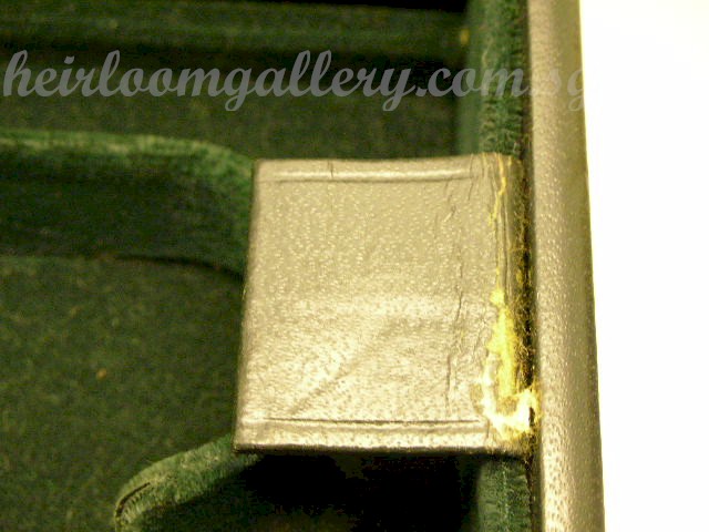 beautiful box is upholstered with GREEN leather in VERY