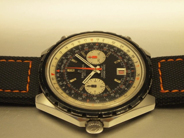 IF YOU ARE LOOKING FOR A VINTAGE, LARGE SIZE, CHRONOGRAPH, THIS IS IT. A VERY NICE CONDITION JUMBO SIZE BREITLING COSMONAUTE NAVITIMER 3 REGISTERS CHRONO WITH 24 HOURS MARKERS. An intelligent instrument: THE NAVITIMER ...the "watch" is passive while the "chrono" is active. The Navitimer copes with all the calculations that might be needed during aerial navigation, car rallies or yachting. It multiplies, divides, calculates averages, enables you to convert kilometeres into knots or miles, and vice versa..... D/ Original BLACK dial with lots of details, signed "BREITLING GENEVE COSMONAUTE NAVITIMER. Original Hands set. C/ Original Case measures 47mm excluding crown, fully signed and hallmarked. Original Breitling Signed Crown. Near mint condition black bezel. M/ Original Breitling signed mechanical winding movement keeps accurate time.Comes with Breitling guarantee paper, instructions and vintage brochures.