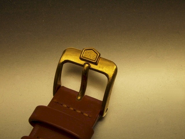 HEUER complicated baby Moonphase calendar chronograph with flexi-lugs. Comes with original Heuer buckle. D/ 100% original and MINT Condition beautiful dial with black roman numerals signed ED HEUER & CIE, SWISS. There are 7 ORIGINAL BLUED STEEL hands altogether on this complicated timepiece. The register at 12:00 is the moonphase plus date disc, the one at 9:00 for the subsidiary second hand, 30 minute register at 3:00 and 12 hour register at 6:00. The 4 registers are framed with gold ring to give them contrast to the pearly white dial. The Moonphase/date disc is intentionally enlarged to give the owner an easy reading of the date of the day as this is probably the most used function on a daily basis. C/ Housed in its original gold-filled top case with stainless steel back case measuring 32mm excluding crown. Special flexi-lugs. Stainless steel Snap back case fully signed and hallmarked Ed Heuer & Cie Switzerland 188.515 SWISS MADE STAINLESS STEEL BACK. Original onion crown. Original olive pushers start, stop and reset properly. M/ Mechanical winding complicated SUPER CLEAN AND MINT CONDITION 17 JEWELS LEMANIA 1883 movement keeps very good time and all chronograph functions work perfectly. Quick set buttons at 10:00 and 11:00 positions all function perfectly. |