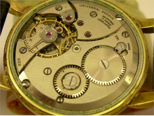 Inner case back is signed UNIVERSAL GENEVE 128 SWISS, 14K 0.585,